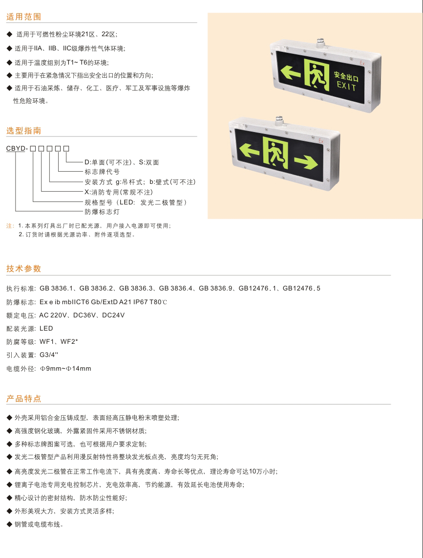 CBYD系列防爆消防應(yīng)急標(biāo)志燈具(IIC tD)(III型)